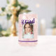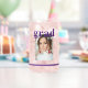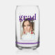 Photo Graduation Party Elegant Modern Script Can Glass Beer Tumbler feature your favorite photo with the simple purple text "Grad (year)" and your name and personalized graduation details on the front. Perfect for the grad as a graduation gift or graduation party decor. Created by ©Evco Studio www.zazzle.com/store/evcostudio
