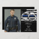 A bold, modern police graduation design featuring metallic handcuffs layered over a black-and-white American flag. The grayscale patriotic theme creates a strong, commanding look while allowing the graduate’s portrait and details to stand out clearly. Perfect for celebrating a new police academy graduate with a clean, masculine, professional aesthetic.