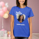 For a blue/dark t-shirt. White text. Personalize and add a name and a photo inside the heart shaped frame. Happy Birthday with flowers.