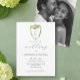 The front showcases delicate greenery and a refined wedding monogram, while the back includes space for your custom photo. Use the template fields to easily personalize names, dates, and wording, ensuring your invitation feels uniquely yours. Available as printed or digital email formats, these designs work beautifully for spring, summer, and garden celebrations.
