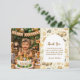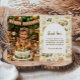A soft and charming safari-themed design featuring gentle watercolor animals surrounded by delicate wildflowers and botanical greenery. Sweet lions, giraffes, elephants, and zebras create a whimsical storybook scene in warm neutral tones of beige, cream, and soft sage. The elegant arch layout and botanical details give this design a timeless and refined look, perfect for celebrating a little one’s special first birthday.