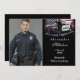 A bold and meaningful design created to honor a new police graduate. Featuring a rustic American flag paired with silhouettes of law enforcement figures, this layout blends strength, pride, and heritage. The dark background makes the metallic texture stand out, giving the card a powerful, masculine look.