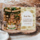 A soft and charming safari-themed design featuring gentle watercolor animals surrounded by delicate wildflowers and botanical greenery. Sweet lions, giraffes, elephants, and zebras create a whimsical storybook scene in warm neutral tones of beige, cream, and soft sage. The elegant arch layout and botanical details give this design a timeless and refined look, perfect for celebrating a little one’s special first birthday.