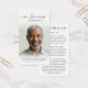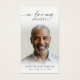 Keep the memory of a loved one close with this personalized photo remembrance tribute card featuring a beloved picture, the sentiment IN LOVING MEMORY, name and dates on the front and an editable remembrance message or obituary on the back. Share these cards at a funeral, memorial service, visitation, wake or Celebration of Life or send with a thank you note. With its simple yet elegant classic black and white design and elegant script typography, it makes a meaningful keepsake which offers comfort and a lasting tribute for family and friends. Its small and portable size of 3.5x2" (wallet-sized) makes it convenient for loved ones to carry it with them as a reminder of your loved one’s life and spirit.