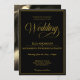 A refined cinematic wedding invitation in black and gold featuring on the front your wedding details in a combination of Elegant serif font combined with script framed in