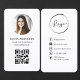 Modern minimal business card featuring a clean white color palette with a photo and QR code for quick and easy contact sharing. Designed to help clients instantly save your details, connect on social media, or view your portfolio. Perfect for professionals, creatives, and small business owners seeking a fresh, clean, and polished brand presence. Editable text, photo, and QR code destination. Clean print-ready layout.