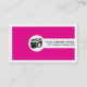 Photographer feminine business cards-hot pink, featuring a camera in the front and your initials/monogram on the back along a QR code for more info.