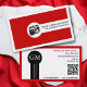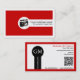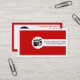 Photographer feminine business cards-red, featuring a camera in the front and your initials/monogram on the back along a QR code for more info.