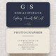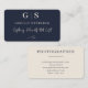 Professional business card designed for photographers using a classic navy blue color palette with a monogram style layout. The design keeps the presentation clean, polished, and easy to read while supporting a strong personal photography brand. Suitable for photographers, creatives, and visual professionals. Fully customizable text and monogram details with a print-ready layout.