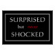 Zeigen Sie "Überraschtes, aber nie Schockiertes" Poster an Ihrer Wand auf der Zuhause oder in der Schule. Schwarzer Hintergrund mit weißer und roter Schrift.