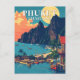 Entfliehen Sie den atemberaubenden Stränden von Phuket, Thailand, mit dieser Vintagen Illustration Postkarte. Mit seinen langen Schwänzen, Palmen und einem ruhigen Sonnenuntergang über dem atemberaubenden Wasser erinnert diese Postkarte an die zeitlose Schönheit des tropischen Paradieses Thailands.
