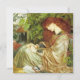 Dieses Design zeigt ein Gemälde der Pre-Raphaelite Künstlerin Dante Gabriel Rossetti (1828-1882). Es zeigt Pia de' Tolomei, eine italienische Adelsfrau aus Siena, die in Dantes göttlicher Komödie, wo sie von ihrem Mann ermordet wurde, als Nebenfigur erschien. Sie war für ihre große Schönheit bekannt. Dante Gabriel Rossetti hat sie hier mit langen, fließenden roten Haarschlösseln dargestellt, so wie sein Name es war. Sie sitzt in einem Garten eines italienischen Palastes. Ihr Hals wird durch ihre Haltung verlängert, die ihre weiße, blassgelbe Haut betont. Neben ihrem Kopf stehen grüne Blätter, die das blüh von Jugend und Schönheit symbolisieren. Das Originalwerk wurde um 1868 gemalt.