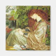 Dieses Design zeigt ein Gemälde der Pre-Raphaelite Künstlerin Dante Gabriel Rossetti (1828-1882). Es zeigt Pia de' Tolomei, eine italienische Adelsfrau aus Siena, die in Dantes göttlicher Komödie, wo sie von ihrem Mann ermordet wurde, als Nebenfigur erschien. Sie war für ihre große Schönheit bekannt. Dante Gabriel Rossetti hat sie hier mit langen, fließenden roten Haarschlösseln dargestellt, so wie sein Name es war. Sie sitzt in einem Garten eines italienischen Palastes. Ihr Hals wird durch ihre Haltung verlängert, die ihre weiße, blassgelbe Haut betont. Neben ihrem Kopf stehen grüne Blätter, die das blüh von Jugend und Schönheit symbolisieren. Das Originalwerk wurde um 1868 gemalt.
