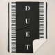 Mit dieser auffälligen Sherpa-Decke blühe die Innendekoration mit musikalischer Note. Die Decke ist mit zwei klassischen Klaviertastaturen auf den gegenüberliegenden Seiten geschmückt. Der Mittelpunkt des Designs ist schwarz, das Wort "Duet" in der Mitte in weißen Hauptstädte. Ein ideales musikalisches Geschenk für die Zuhause.