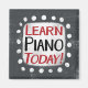 "Learn Piano Today" ist ein niedliches Textdesign in Grau mit schwarzem und rotem Text. Er sitzt auf einer weißen Akzent-Form und niedliche weiße Polka-Punkte, die ihn umgeben.