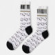 A musical theme musicians and music lovers. alike. These black and white socks feature a piano keyboard at the border, over repeating pattern various musical notes.