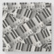 Eine geschichtete Collage von Klavierschlüsseln. Dieses inspirierte Klavierschlüsselmuster hat die mit den jeweiligen Noten markierten Tasten. Das wurde von meiner Töchtertastatur inspiriert, die so markiert ist, um ihr zu helfen, die Noten zu lernen. Die Tasten sind in progressiven Grautönen gefärbt. Dies verleiht der Tastatur ein zackiges Aussehen, wenn man sie aus der Ferne betrachtet.