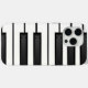 Klappgehäuse mit schwarz-weißen Klaviertasten