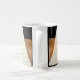 Foto von Klaviertasten von einem Ende des Klaviers. Auf beiden Seiten der Tasse bedrucktes Design. Anpassbare Hintergrundfarbe.