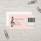 A simple business card with a light pink background for a piano teacher. It comes with a treble clef and piano keys. Perfect for piano lessons, pianist performer, music teacher, etc.