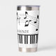 Modern, stylish and personalized Insulated Tumbler Travel Cup featuring piano keys or keyboard and music notes with a name, monogram or your custom text in an editable font style and your choice of background, notes graphic and text colors (shown in black and white). Ideal for music teachers, musicians, music professionals or music lovers. ASSISTANCE: For help with design modification or personalization, color change, resizing, transferring the design to another product or if you would like coordinating items, contact the designer BEFORE ORDERING via the Zazzle Chat MESSAGE tab or email at makeitaboutyoustore@gmail.com.