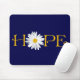 Dieses anpassbare marineblaue Mousepad hat das Wort Hoffnung, mit einer weißen und gelben Shasta Daisy Blume anstelle des "O" in Hope. Ändern Sie die Hintergrundfarbe in das, was Sie gewollt haben. Fügen Sie Ihren eigenen Text hinzu, wenn Sie möchten.