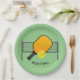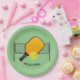 Pickle Ball Pickleball Design Paper Plate mit anpassbarem Text und Hintergrundfarbe.