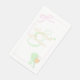 Leider ist beim Bestellvorgang nicht die Größe angegeben, zumindest habe ich es nicht gesehen. Der Name "Duschen"-Servietten ist etwas seltsam :-) Aber man kann aus verschiedenen Designs auswählen und es sieht ganz nett aus. Ich würde mir aber noch viel mehr verschiedene Farben und Muster wünschen! Insgesamt eine nette Idee für ein personalisiertes Accessoire zu allen möglichen Feiern. Der Druck ist OK, er ist nur ganz leicht unscharf.