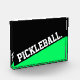 Dieses elegante, sportliche Design zeichnet sich durch PICKLEBALL-Text in fett weißer, sportlicher Blockbuchstaben aus, der in einem diagonalen Schrägstrich nach oben angezeigt wird. Die diagonale Unterseite ist lebhaft hell limig grün.