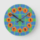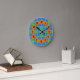 Blaue und grüne Pickleball-Plätze mit orangefarbenen Pickleball-Plätzen auf dieser lustigen Pickleball-Uhr.