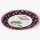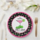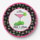 Pickleball themed pink and green dinks and drinks cosmo cocktails personalized bridal shower party supplies. In this fun design green pickleballs have been turned limes in a pink cosmo cocktail for a little day drinking...I mean dinking. Personalized, colorful pickleball-themed dinks and drinks paper plates for your pickleball-loving bride to be bridal shower.