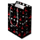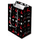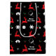 Rote, grüne und weiße Weihnachtsbäckerchen Mittlere Geschenktasche mit Rentieren, Pickleballs und Schneeflocken auf schwarzem Hintergrund. Eine tolle Idee, um Ihre Geschenke für Sie zusammenzupacken und für Sie einen Freund oder ein Familienmitglied auszuwählen