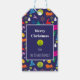 Farbenfrohe Weihnachts-Pickleball-Geschenketiketten mit bunten Weihnachtsbildern auf marinebasischem Hintergrund. Eine tolle Idee, um Ihre Geschenke für Sie zusammenzupacken und für Sie einen Freund oder ein Familienmitglied auszuwählen