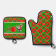 Pickleball Joy Christmas Party Rote Grüne Ornament Ofenhandschuh & Topflappen-Set