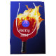 Rotes Pickleball Paddel mit blauem Ball in Flammen auf blauem Hintergrund zum 70. Geburtstag. Die Hintergrundfarbe kann geändert werden. Text ist bearbeitbar.