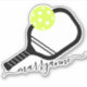 Personalisierter Name Contour Cut Sticker mit Pickleball Paddle und Ball Monogram in einem Girly, Feminine, Elegant Calligraphy Script Schriftart ist in verschiedenen Größen für Ihren Laptop, Wasserflasche, Aufkleber Sammlung oder als Favoriten und Geschenke für eine Tennis Geburtstagsparty erhältlich.