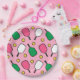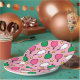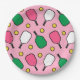 Kreative Pickleball Party- oder Event-Teller mit heißen rosa und coolen grünen Paddeln und gelben Kugeln Muster auf rosa Hintergrund für Ihre Lieblings-Pickleball-Spieler.