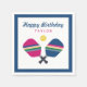 Feiern Sie Ihren Pickleball-Spieler oder -Fan mit diesen lustigen und lebendigen Servietten aus dem Party mit gestreiften blauen, grünen und rosa Pickleball-Paddeln. Text ist anpassbar. Glückliche Geburtstagsnachricht ist auch anpassbar. Teil einer Sammlung von Parcel Studios.