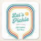Untersetzer für Ihr nächstes Pickleball-Party. Design bietet eine Retro-Streifen Kontur eines Pickleball Paddle und die Worte "Let's Pickle" in einem lustigen Schriftart. Fügen Sie einfach Ihren eigenen Text hinzu - Spielername, Pickleball Club/Turniername, etc. Ideal für eine erwachsene Pickleball Geburtstagsfeier, Typ- oder Mädchensammlung Ansammlung oder Alltagsspass. Lass uns spielen - der beste Sport aller Zeiten!!