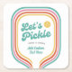 Untersetzer für Ihr nächstes Pickleball-Party. Design bietet eine Retro-Streifen Kontur eines Pickleball Paddle und die Worte "Let's Pickle" in einem lustigen Schriftart. Fügen Sie einfach Ihren eigenen Text hinzu - Spielername, Pickleball Club/Turniername, etc. Ideal für eine erwachsene Pickleball Geburtstagsfeier, Typ- oder Mädchensammlung Ansammlung oder Alltagsspass. Lass uns spielen - der beste Sport aller Zeiten!!