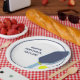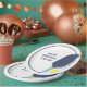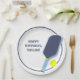 Throw the perfect court-side birthday party. These paper plates are ready to be personalized with your own custom message in navy blue letters which appears beside my realistic style illustration of a pickleball paddle and ball in navy blue, light blue and bright yellow.