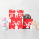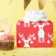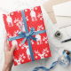 Rot-weiße Weihnachtsverpackung mit Rentieren und Pickleballs auf rotem Hintergrund. Eine tolle Idee, um Ihre Geschenke für Sie zusammenzupacken und für Sie einen Freund oder ein Familienmitglied auszuwählen