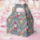 Rote, beige und graue Weihnachtspickleball Gefälligkeitsbox mit Weihnachtsmann, Rentiere, Pickleballs und Schneeflocken auf grauem Hintergrund. Eine tolle Idee, um Ihre Geschenke für Sie zusammenzupacken und für Sie einen Freund oder ein Familienmitglied auszuwählen