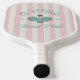 Dieses Paddelpaddel mit seinen eleganten und luxuriösen Schriftart bietet eine ästhetische Ästhetik des "alten Geldes". Es verfügt über rosa Streifen und "Pickleball Social Club" mit einem Paddelikat in der Mitte.