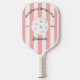 Super fun Pickleball Social Club maßgeschneidertes Pickleball Paddel mit rosa gestreiftem Hintergrund. Alle Texte können personalisiert sein. Fügen Sie Ihren Teamnamen und Ihren Namen oder Spitznamen hinzu und werden im Jahr festgelegt. Preppy cabana Streifen bilden den Hintergrund mit einem weißen Pickleball in der Mitte. Lass dein Paddel reflektiert deine Persönlichkeit auf dem Platz. Ob Sie mit Finesse essen oder das Netz dominieren, dieses Paddel verbindet Performance mit unbestreitbarem Flair für den stilvollen Pickleball-Enthusiast. Alle Farben können im Designwerkzeug angepasst werden.