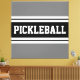 Dieses lustige, sportliche Design beinhaltet PICKLEBALL Text in einem schwarzen Streifen mit doppelter weißer Streifen auf grauem Hintergrund.