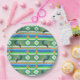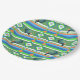 Pickleball Party Papier Teller. Pickleball Paddles & Orangenbälle werden auf einem grünen Platz gewartet, der mit Grüntönen, Blues, weißen und orangefarbenen Streifen und Diamanten geschmückt ist. Phantastisches Party liefert für ein Ende der Saison pickleball rec Liga Party, Feiertagsfeiern mit Pickleball-Freunden, pickleball Turnier maßgeschneidert, oder eine zufällige Hinterhof-Grillen mit Pickleball Pieps.