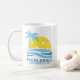 Eine lustige Coffee Tasse mit Pickleball "sun", gerahmt von einer tropischen Palme und blauen Ozeanwellen. Fügen Sie unten Ihren eigenen Text hinzu - Clubname, Pickleball Wochenenddatum/Ort, Turniername, Spielernamen, etc. Ein perfektes Geschenk für jeden Pickleball Spieler, Clubveranstalter oder einen Sonderpreis für einen Pickleball-Turniersieger.