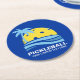 Das ideale Geschenk für Pickleball-Spieler - Untersetzer, die eine pickleball "Sonne" gerahmt von einer tropischen Palme und blauen Ozeanwellen. Fügen Sie Ihren benutzerdefinierten Text zu personalisieren.