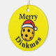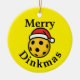 pickleball Weihnachtsschmuck mit einem lustigen Pickle-Ball mit Weihnachtsmannmütze und einem Pun, der sagt, fröhliche Dinkmas !